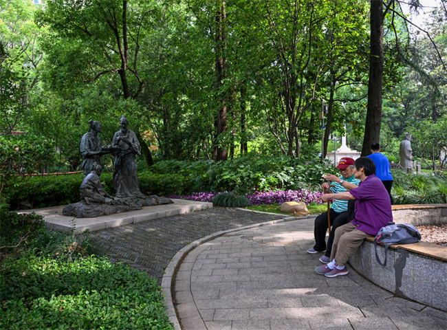 市民在位于上海徐家汇的光启公园休息(2025年5月17日摄)。新华社记者 陈朔 摄