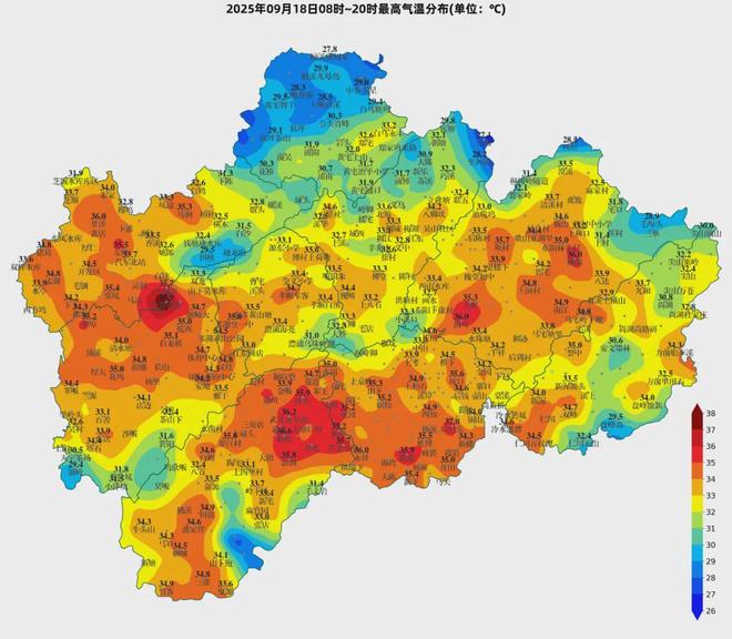 金华近日天气预报:2025年9月18日8时至20时,各县 (市) 城区最高气温武义34.9℃,永康34.0℃,金华33.5℃,兰溪33.3℃,东阳33.1℃,磐安32.8℃,义乌30.9℃,浦江30.6℃。
